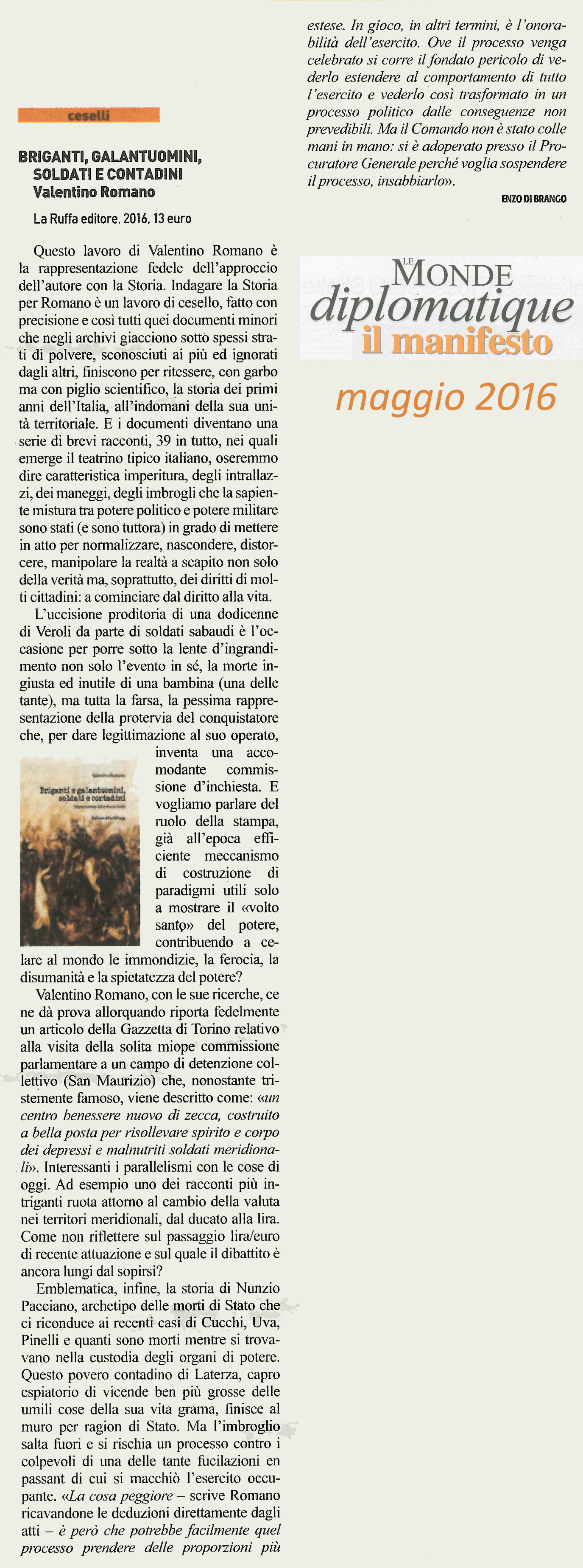 | Briganti, galantuomini, soldati e contadini | Valentino Romano | 2016 | Storia |