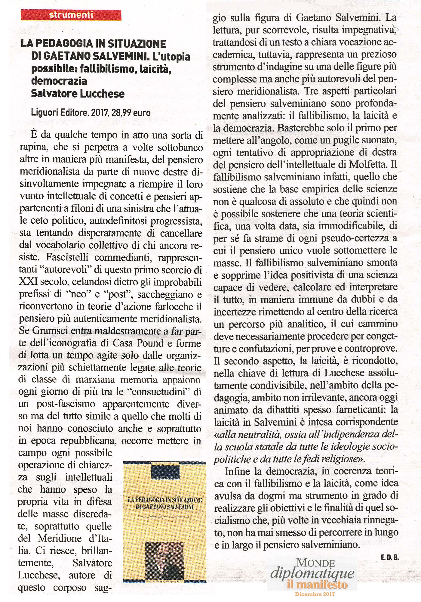 | La pedagogia in situazione di G. Salvemini | Salvatore Lucchese | 2017 | Saggistica |