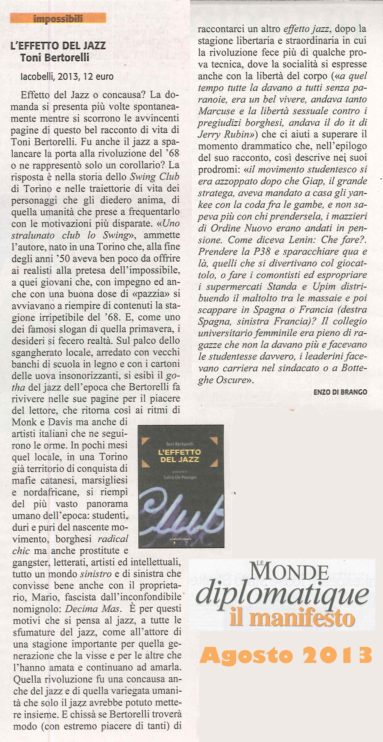 | L'effetto del Jazz | Toni Bertorelli | 2013 | Società |