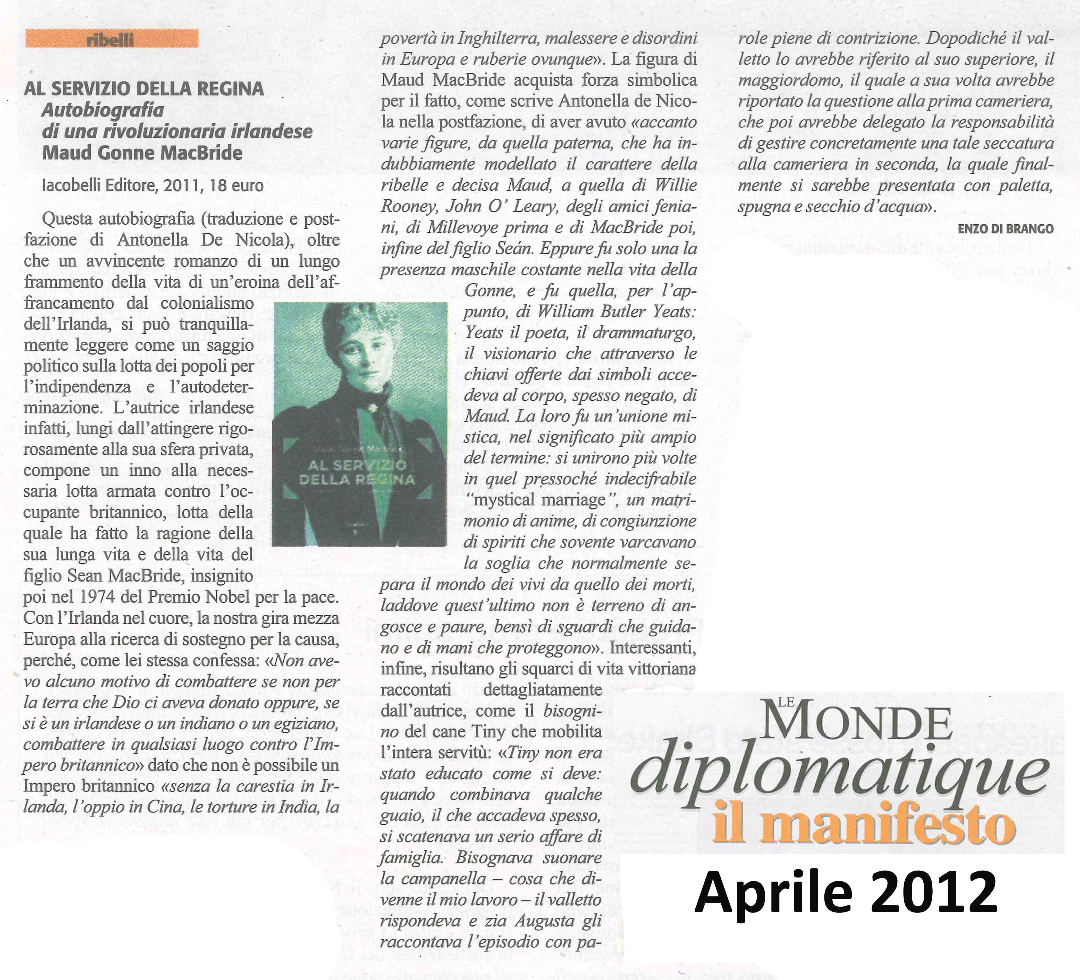 | Al servizio della regina | Maude Gonne Mc Bride | 2012 | Autobiografie |