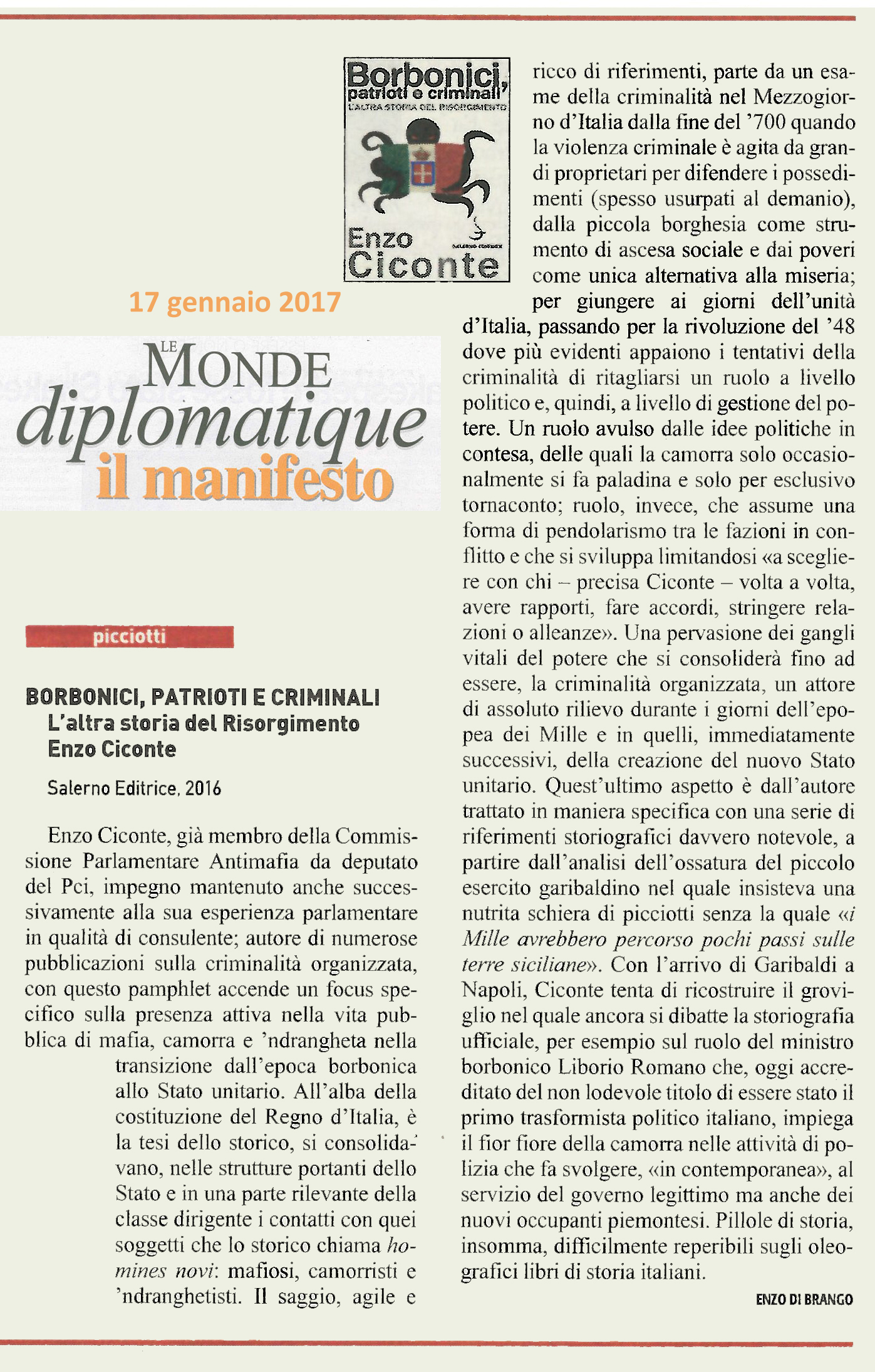 | Borbonici, patrioti e criminali | Enzo Ciconte | 2017 | Storia |