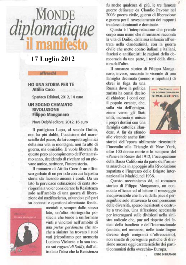 | Un sogno chiamato rivoluzione | Filippo Manganaro | 2012 | Narrativa |