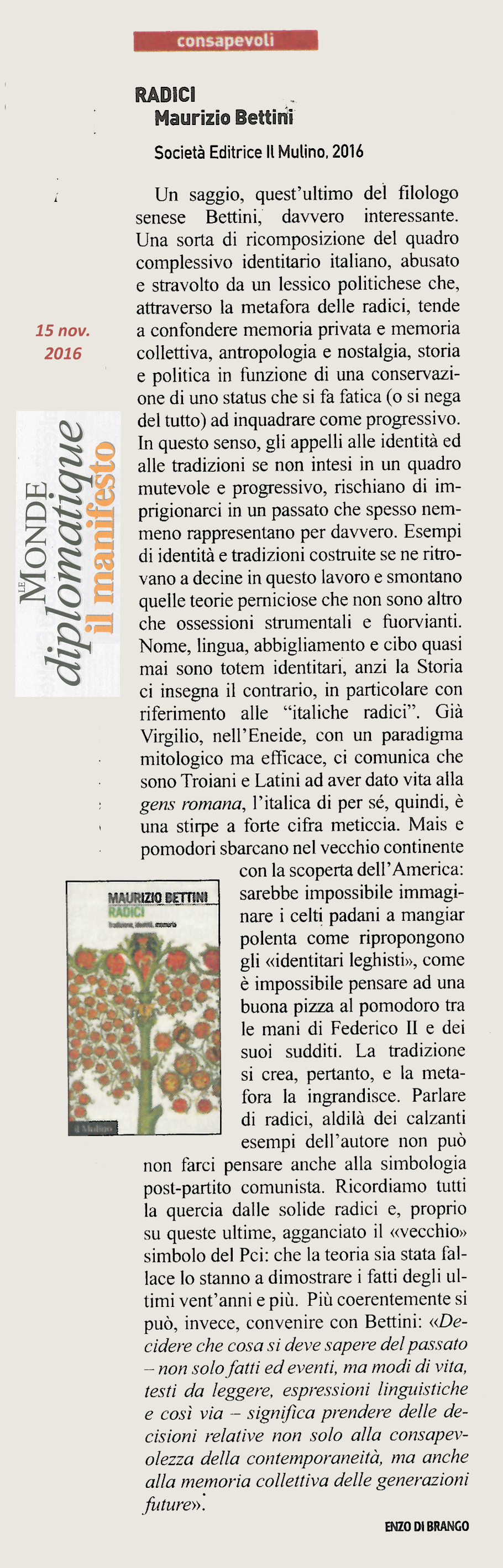 | Radici | Maurizio Bettini | 2016 | Antropologia |