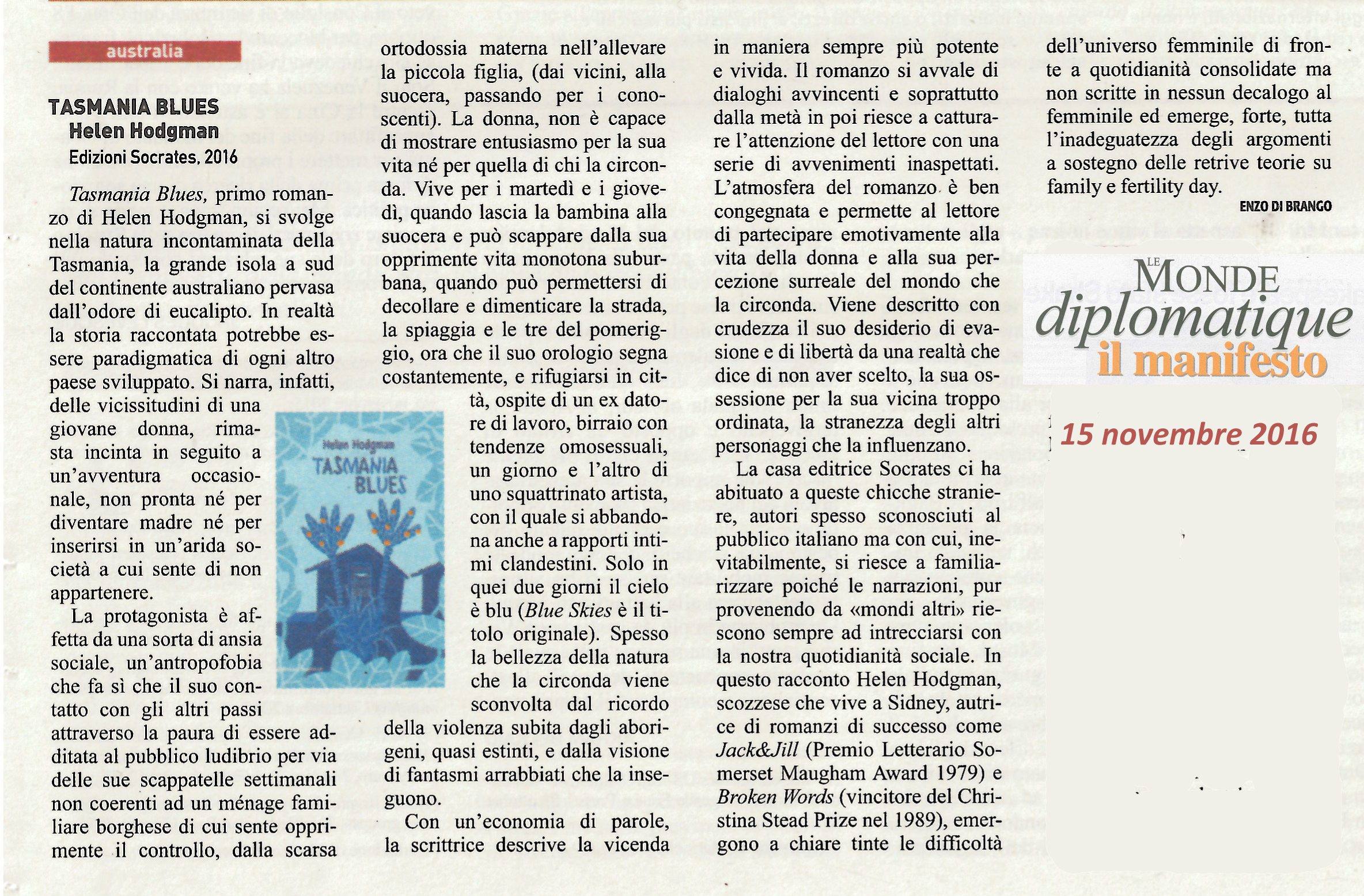 | Tasmania Blues | Hellen Hodgman | 2016 | Narrativa |