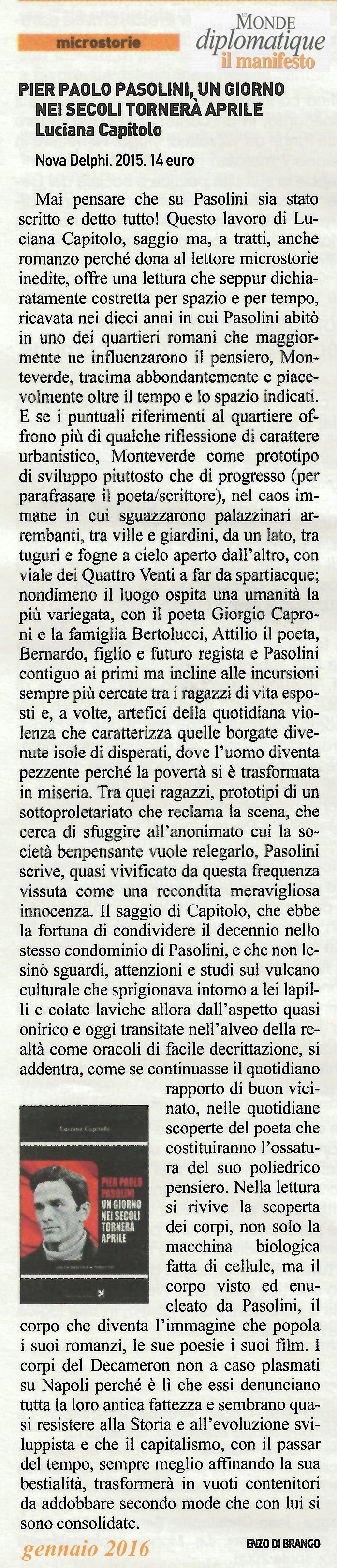| P.P.Pasolini Un giorno nei secoli tornerà aprile | Luciana Capitolo | 2015 | Saggistica |