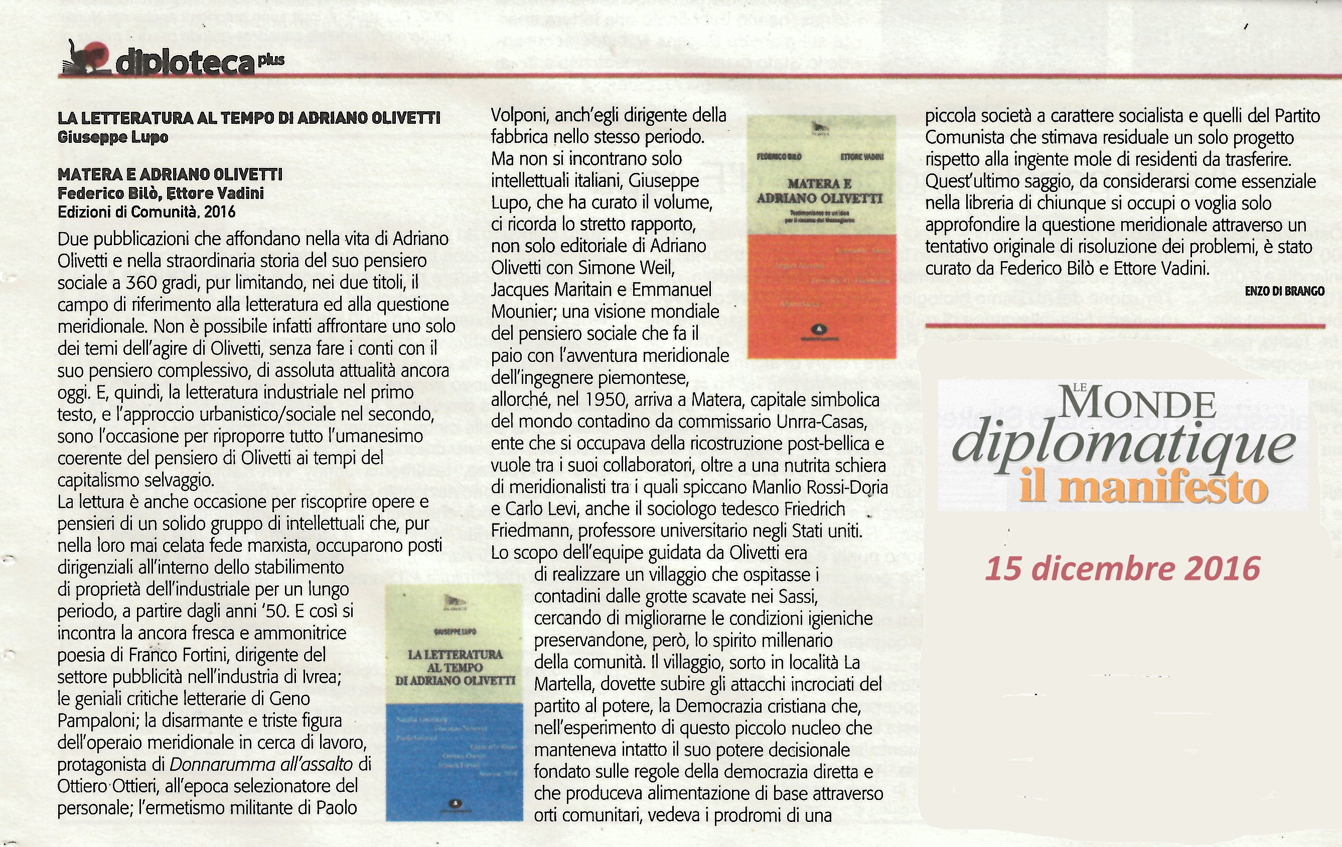 | Matera e Adriano Olivetti | Federico Bilò-Ettore Vadini | 2017 | Società |