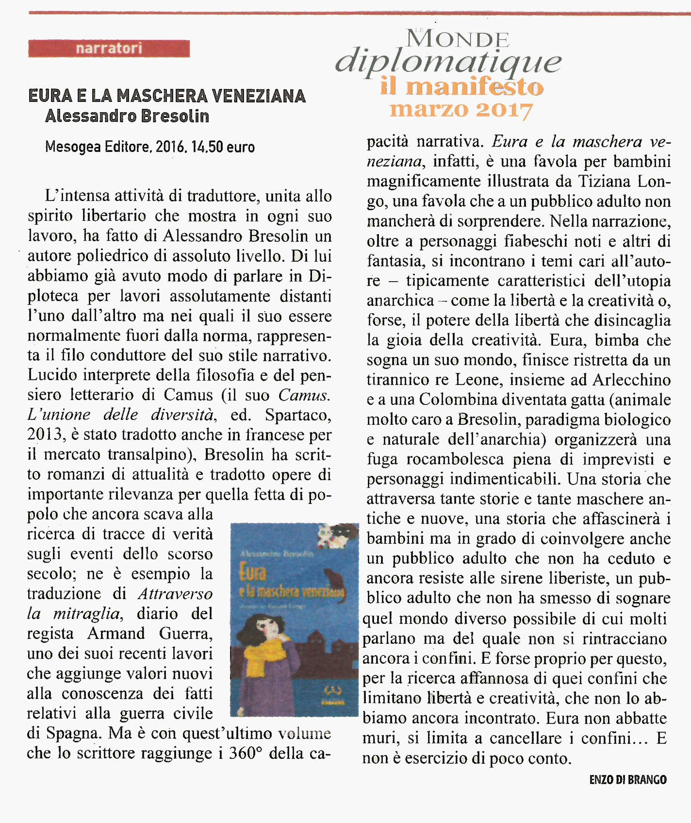 | Eura e la maschera veneziana | Alessandro Bresolin | 2017 | Narrativa |