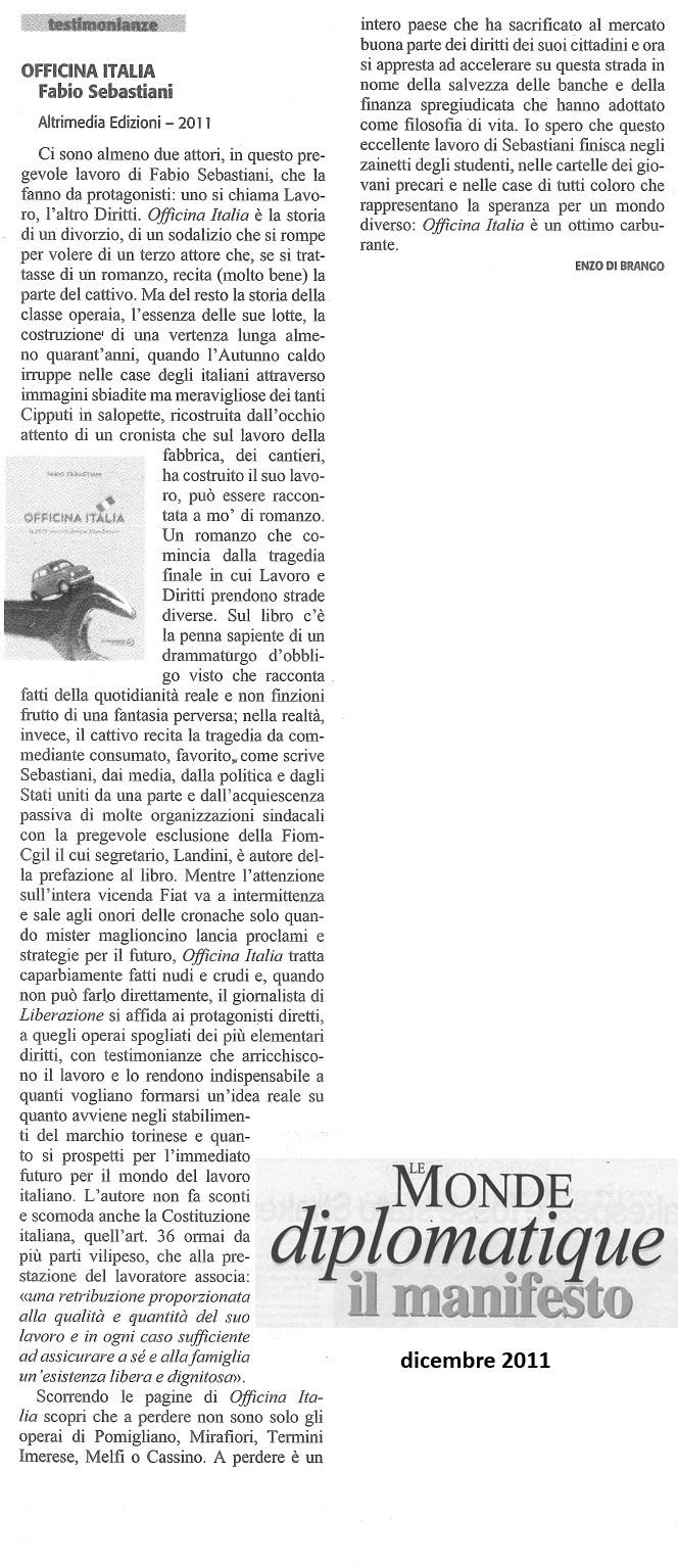| Officina Italia | Fabio Sebastiani | 2012 | politico-sociale |