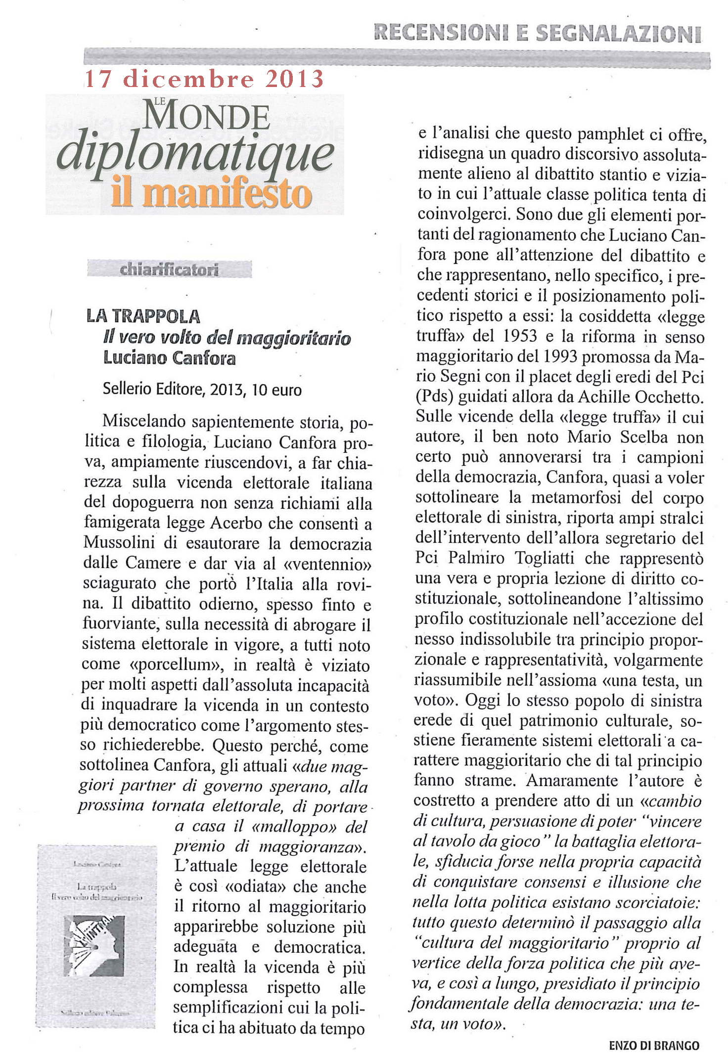 Oltre cento recensioni su Le Monde diplomatique-il manifesto, circa duecento volumi trattati: alcune proposte
