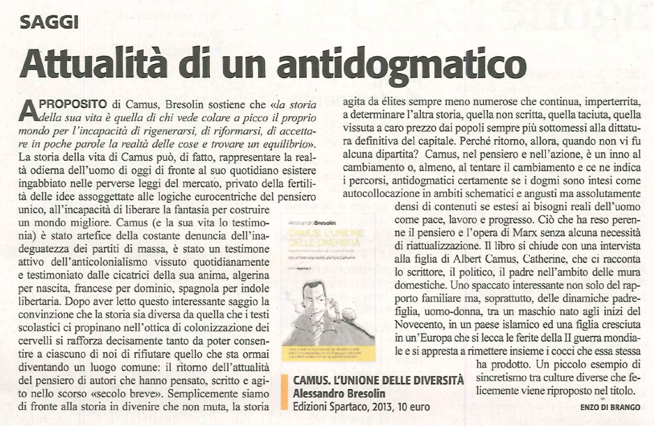 | Camus, l'unione delle diversità | Alessandro Bresolin | 2014 | Saggistica |