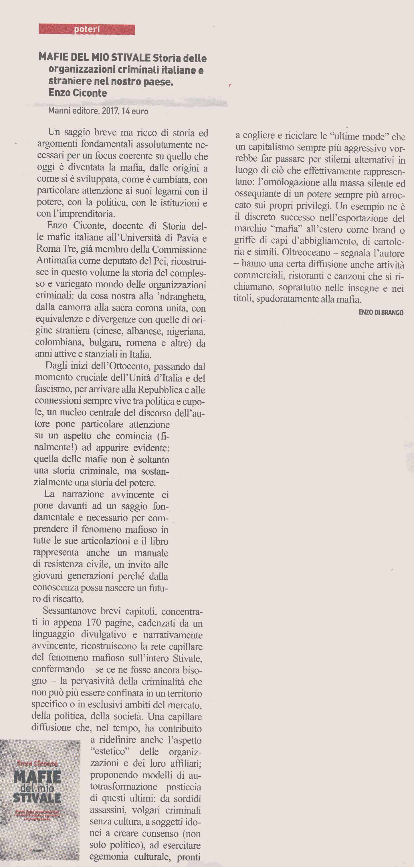 | Mafie del mio stivale | Enzo Ciconte | 2017 | Saggistica |