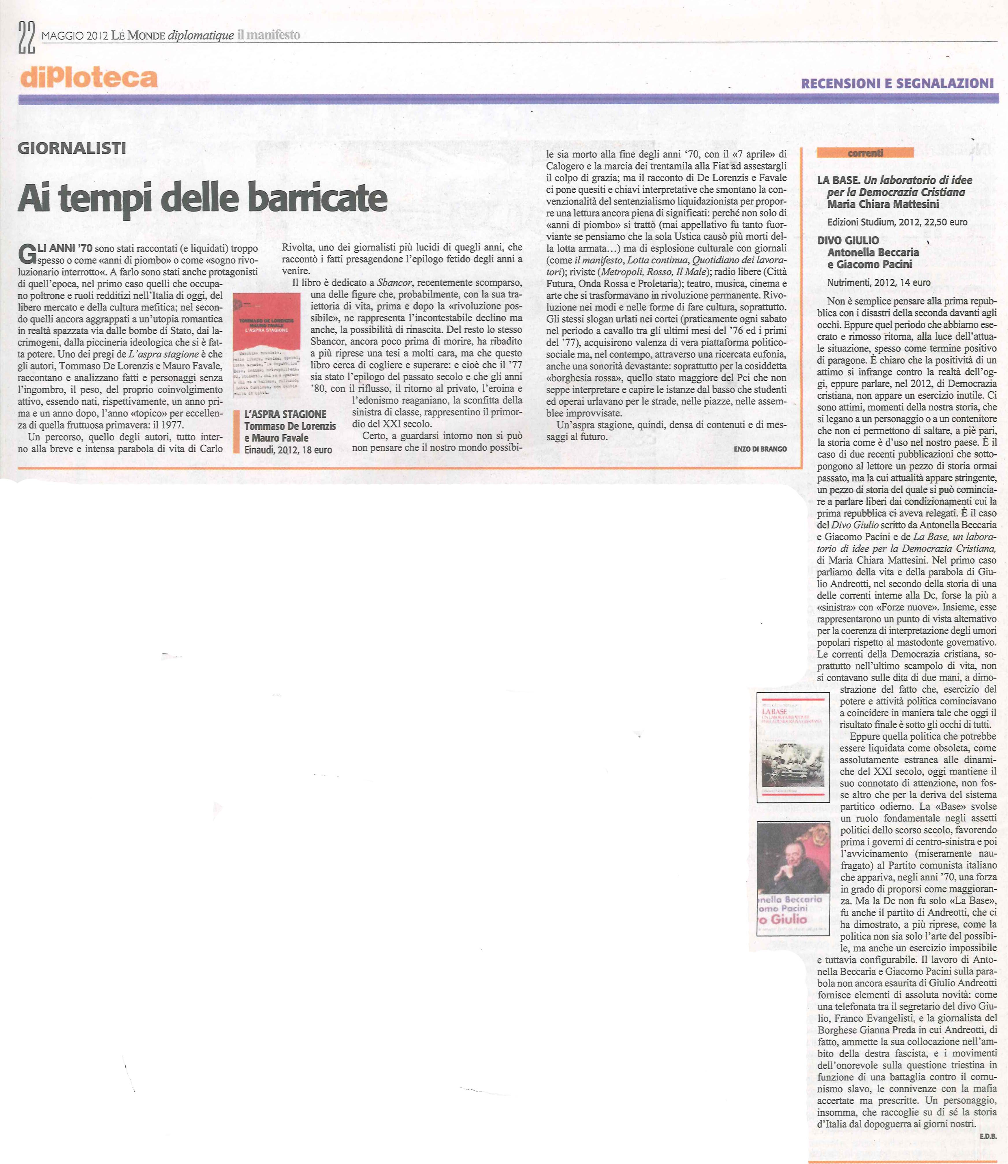 | Ai tempi delle barricate | Tommaso De Lorenzis | 2012 | Rivoluzioni |