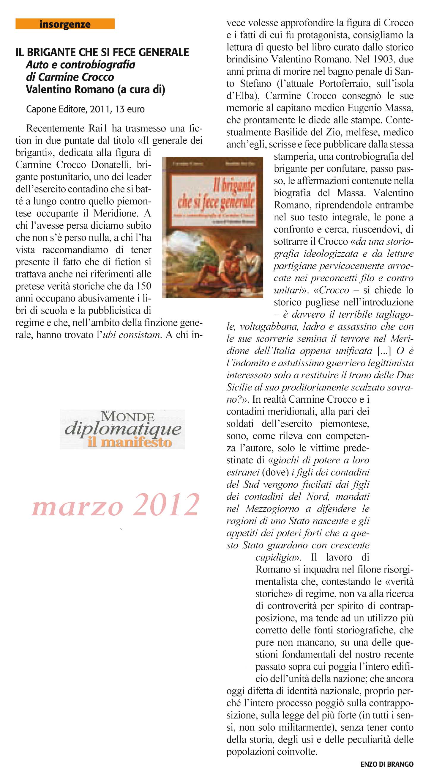 | Il brigante che si fece generale | Valentino Romano | 2012 | Storia |
