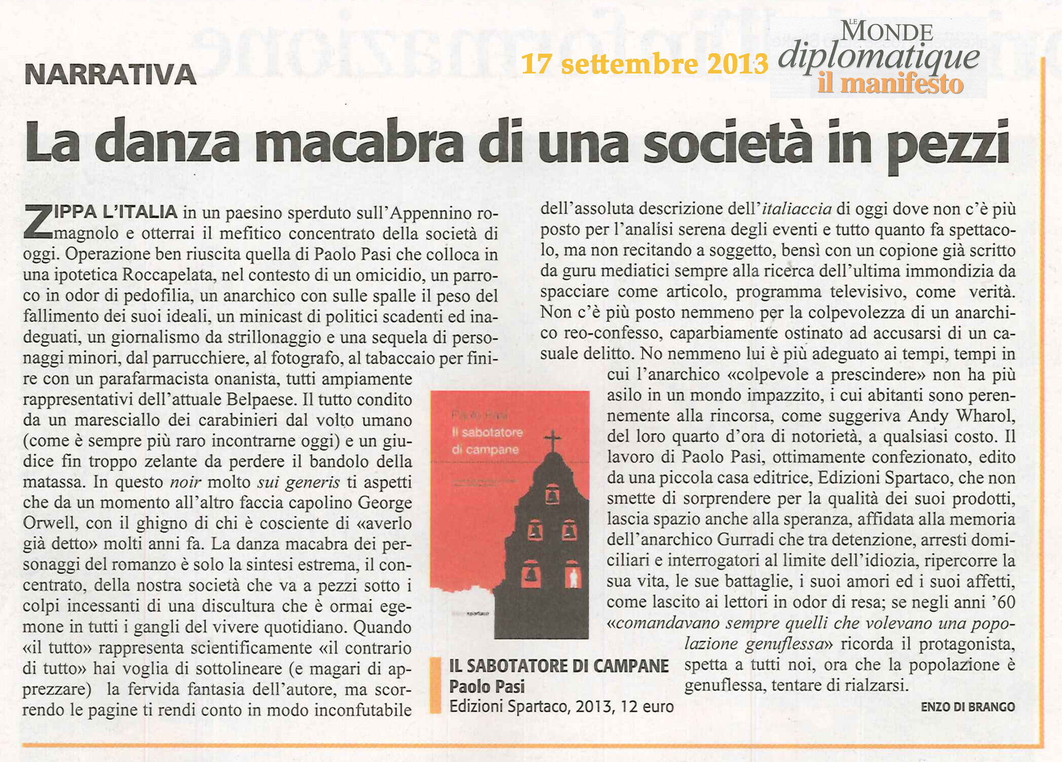 | Il sabotatore di campane | Paolo Pasi | 2013 | Narrativa |